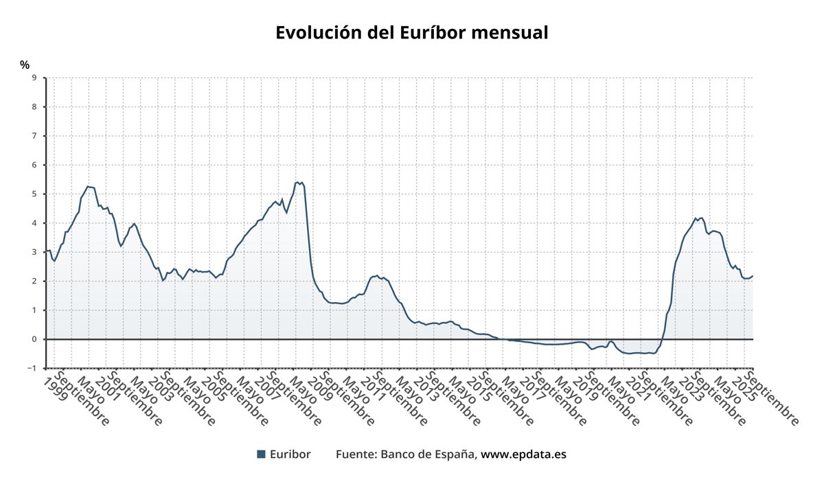 El Euríbor ha cerrado el mes de septiembre situado en el 2,172%, lo que supone un leve alza respecto a agosto, según ha confirmado este miércoles el Banco de España