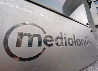 Archivo - Placa con el logotigo del Banco Mediolanum, en la puerta de entrada de uno de sus locales en Madrid (España), a 13 de febrero de 2020. - Eduardo Parra - Europa Press - Archivo
