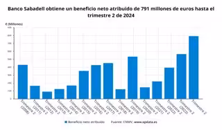 Banco Sabadell cerró el primer semestre del año con un beneficio de 791 millones de euros, un 40,3% más que en el mismo periodo del año pasado, informa en un comunicado remitido a la Comisión Nacional del Mercado de Valores (CNMV) este martes.