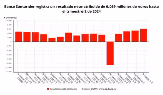 Banco Santander obtuvo un beneficio neto atribuido de 6.059 millones de euros en el conjunto del primer semestre de 2024, lo que equivale a un incremento del 15,6% en comparación con el mismo periodo del año anterior.