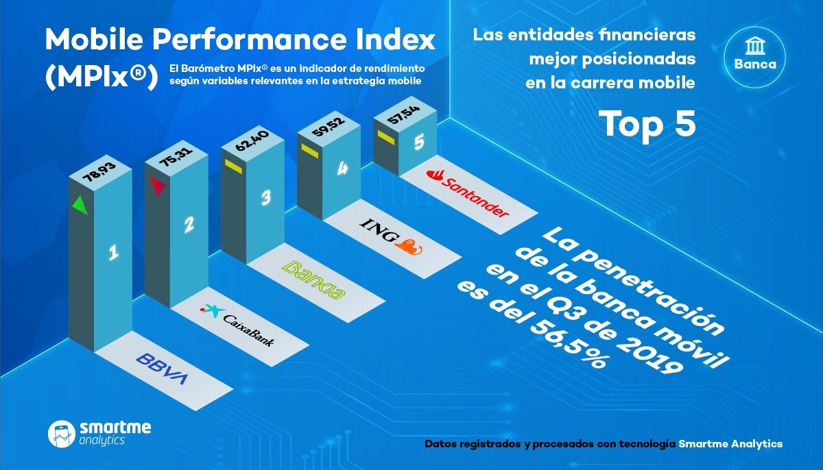 BBVA se ha convertido en la entidad mejor posicionada en el canal móvil en España tras adelantar a CaixaBank en el tercer trimestre del año, según el estudio MPIx elaborado por Smartme Analytics.