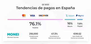 Así se desprende del informe sobre el estado de los métodos de pago en España elaborado por la fintech española Monei y correspondiente al primer trimestre del año.