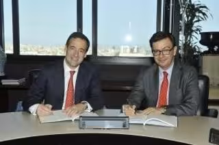 En la firma han estado presentes el vicepresidente de CaixaBank, Antonio Massanell, el consejero delegado de CaixaBank, Gonzalo Gortázar, y el vicepresidente del BEI, Román Escolano.