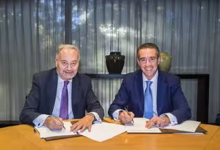 El director general de negocio de CaixaBank, Juan Alcaraz, y el presidente del Consejo General de Procuradores de España (CGPE), Juan Carlos Estévez, han firmado un acuerdo estratégico de colaboración gracias al cual todos los colegiados, empleados y colaboradores de los colegios de procuradores de España tendrán acceso a los productos y servicios de CaixaBank en condiciones preferentes.