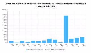 CaixaBank cerró el primer trimestre del año con un beneficio neto atribuido de 1.005 millones de euros, un 17,5% más que en el mismo periodo del año pasado, ha informado en un comunicado remitido a la Comisión Nacional del Mercado de Valores (CNMV) este martes.