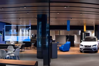 Oficina Store de CaixaBank con un coche procedente de una campaña comercial de renting. - CAIXABANK