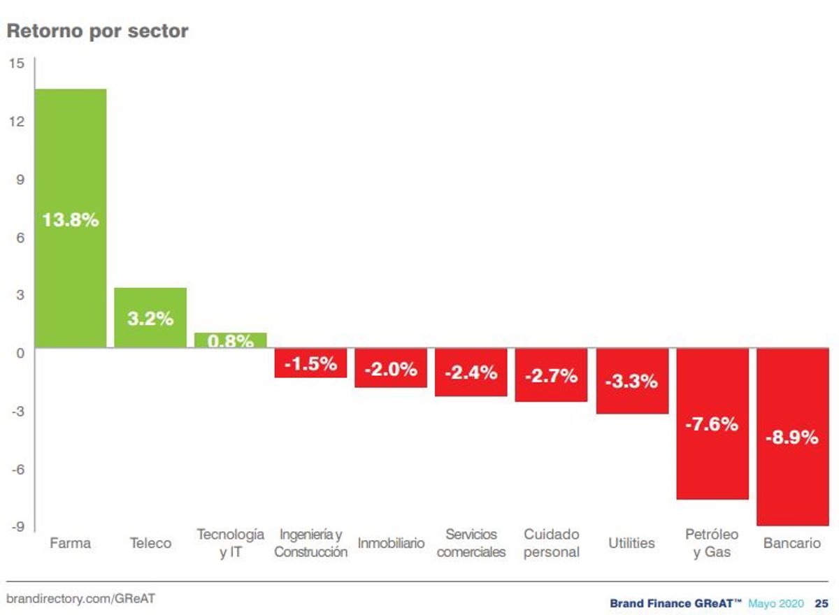 Los sectores cambian de marca en diferentes grados. El sector farmacéutico es el más prolífico en cuanto a cantidad de adquisiciones que conllevan futuros cambios de marca, y telecomunicaciones destaca como el sector donde se producen las adquisidores de mayor valor que, igualmente cambiaron de marca.