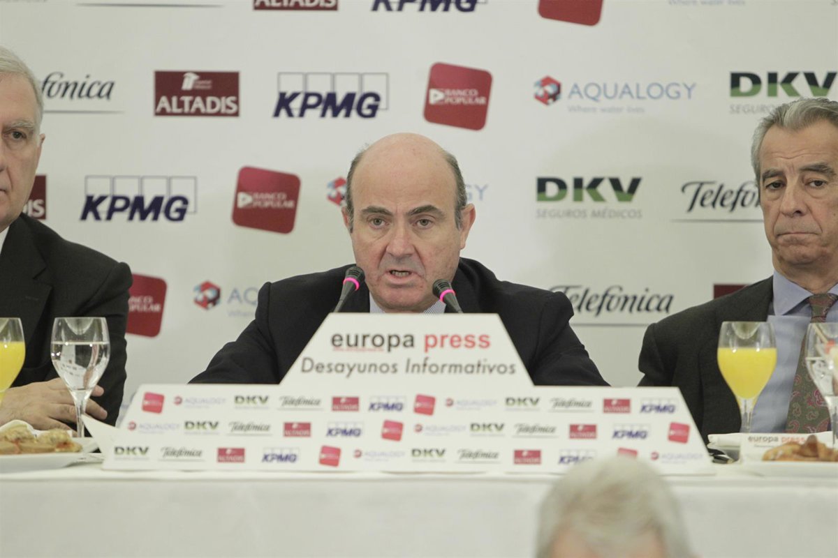 El ministro también se ha referido al proceso de desinversión que se llevará a cabo en los próximos trimestres de la nacionalizada Catalunya Caixa, y ha especificado que la venta de algunas de sus carteras "no es incompatible" con una venta troceada de la entidad. "Trocear es cuando se rompe la red comercial de una forma sustancial o se dividen los servicios centrales. La venta de carteras la están haciendo todos los bancos en España", ha subrayado.