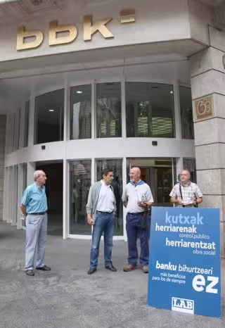 Con esta acción de protesta, LAB ha manifestado su rechazo a la creación de un banco y ha defendido que, de la unión de las cajas, surja otra entidad que "ponga toda su energía en crecer ayudando a quien menos tiene, reinvirtiendo en obras que nos beneficien a todos"