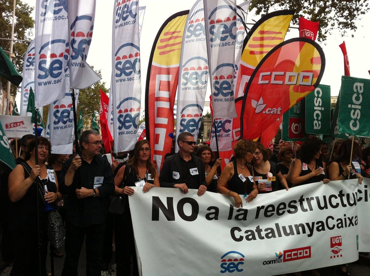 En un manifiesto conjunto, SEC, CC.OO., UGT y Csica han criticado "el inmovilismo de los representantes de la dirección" de Catalunya Banc, y han considerado que el Fondo de Reestructuración Ordenada Bancaria (Frob) maltrata a la entidad catalana.