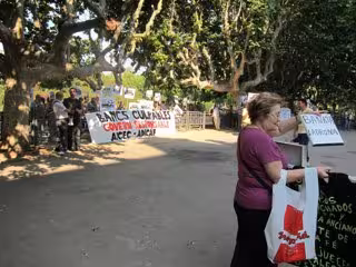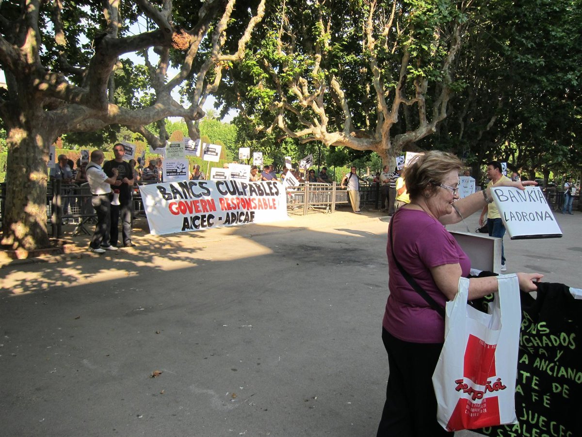 Coincidiendo con esta primera jornada de intervenciones en la comisión, que se irán sucediendo una vez por semana hasta final de mes, a la entrada de la Cámara catalana una cincuentena de personas se han manifestado con pancartas como 'Bancos culpables, Gobierno responsable' y 'Gran estafa. Banqueros ladrones".