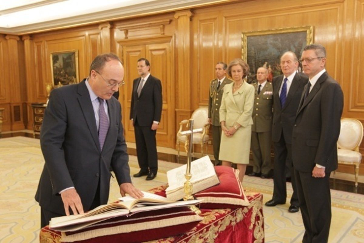 Luis María Linde ha prometido esta mañana ante el Rey su cargo como gobernador del Banco de España en un acto celebrado en el Palacio de la Zarzuela en el que han estado presentes el presidente del Gobierno, Mariano Rajoy, y los ministros de Economía y de Justicia, Luis de Guindos y Alberto Ruiz Gallardón, respectivamente.