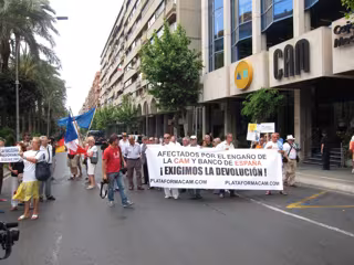 De Ramón ha realizado estas declaraciones a los periodistas antes de una manifestación convocada por este colectivo, que ha congregado a decenas de afectados por productos tóxicos de la caja alicantina frente a la sede central de Caja Mediterráneo (CAM) en Alicante, y que posteriormente han recorrido las principales calles de la ciudad.