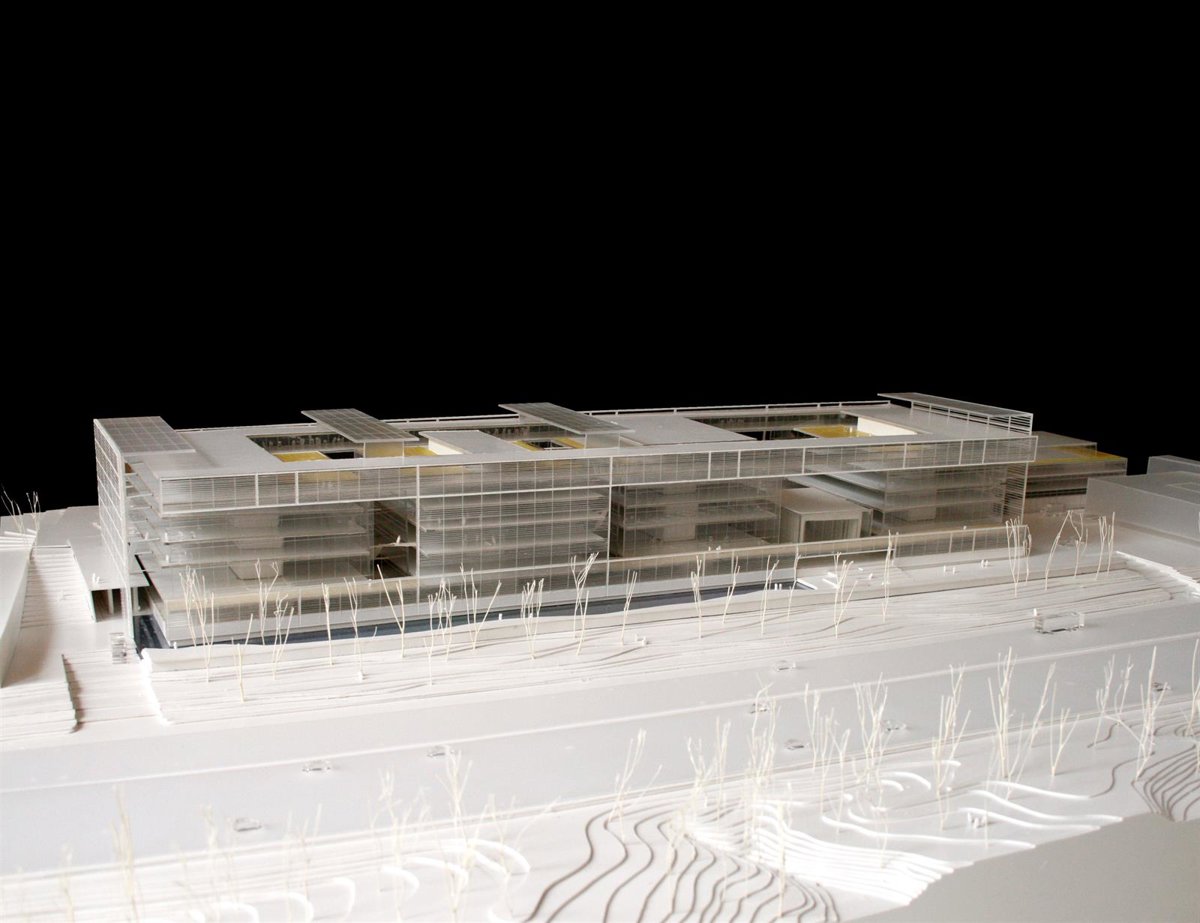 La construcción constará de una planta baja más cuatro alturas, apostando por un modelo horizontal. Esta sede se ubicará en un entorno urbano y con acceso al transporte público, metro y autobús.