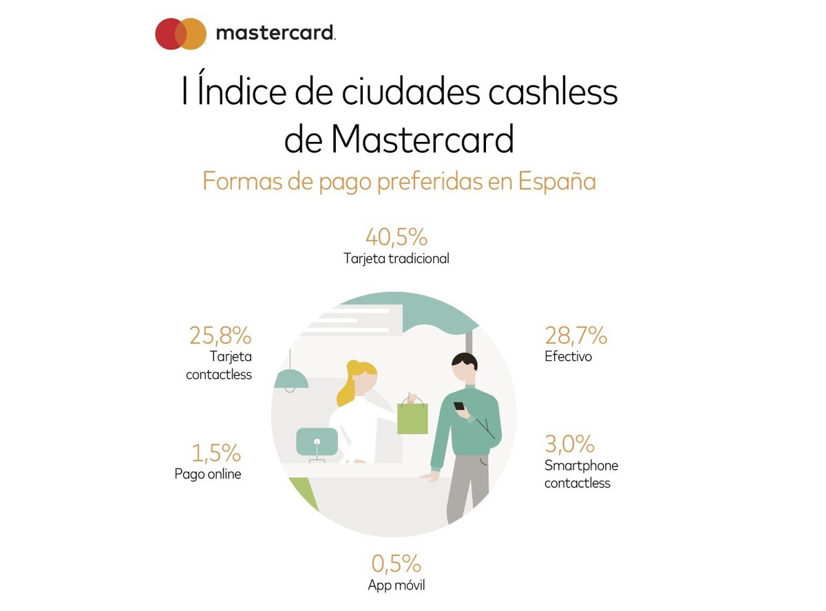 El efectivo sigue siendo la forma de pago más habitual de los españoles, pero no su preferida, según los datos del I Índice de Ciudades Cashless de Mastercard elaborado por Alpha Research.