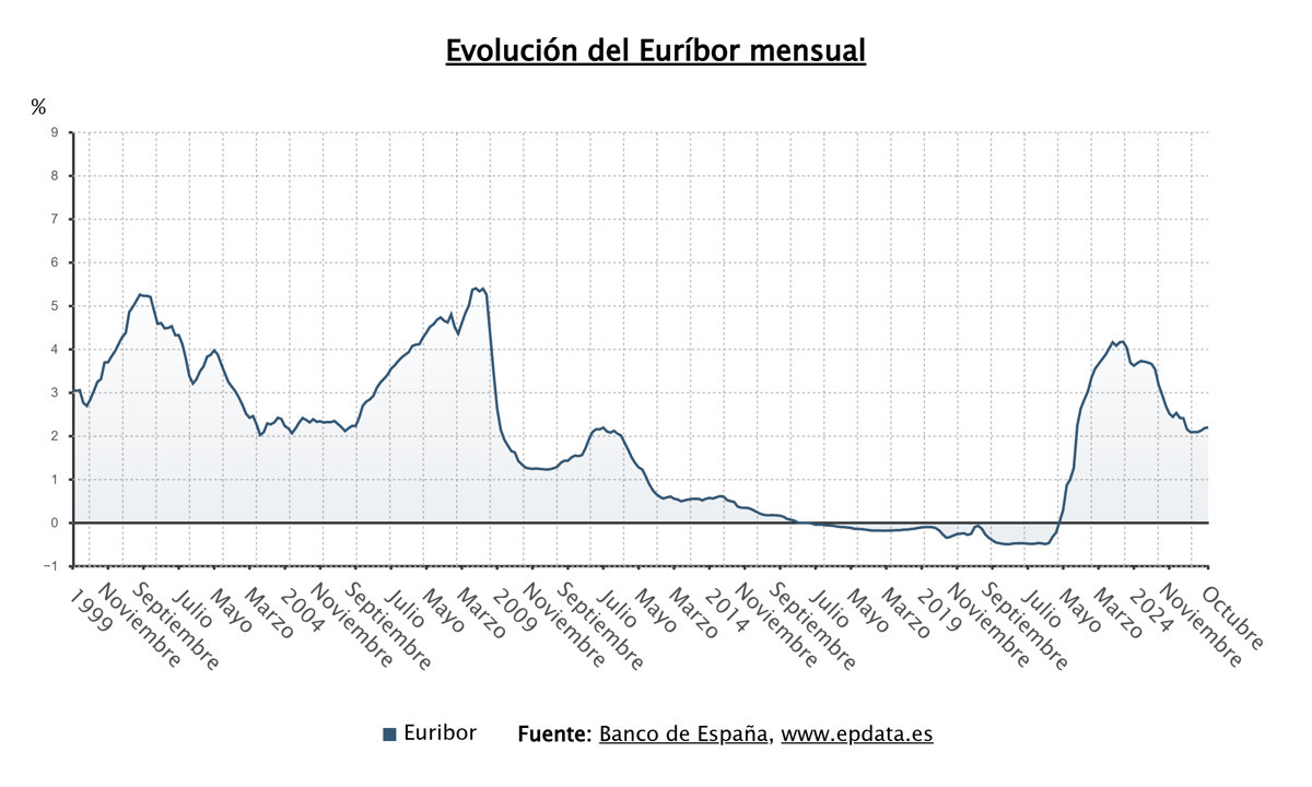 El índice encadena así tres meses al alza y suma más de 10 puntos básicos desde julio, cuando se encontraba en el 2,079%. Sin embargo, desciende 50 puntos básicos frente al 2,691% registrado en octubre de 2024.