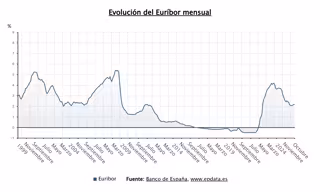 El Euríbor, índice de referencia para los préstamos hipotecarios a tipo fijo, ha cerrado octubre con una media mensual del 2,187%, lo que supone una ligera subida frente al 2,172% con el que terminó septiembre, según los datos consultados por Europa Press.