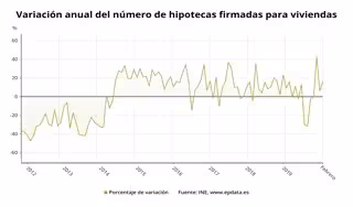 El número de hipotecas constituidas sobre viviendas inscritas en los registros de la propiedad se situó en 36.050 el pasado mes de febrero, cifra un 16,1% superior a la del mismo mes de 2019, según ha informado este miércoles el Instituto Nacional de Estadística (INE), que recuerda que los datos proceden de escrituras públicas realizadas anteriormente.