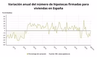En términos mensuales (agosto sobre julio), el número de hipotecas sobre viviendas bajó un 23,8%, mientras que el capital prestado retrocedió un 22,4%. En ambos casos se trata de su segundo mayor descenso mensual en un mes de agosto desde al menos 2016.