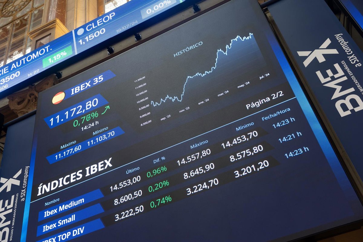 Un panel del Ibex 35, en el Palacio de la Bolsa de Madrid, a 22 de julio de 2024, en Madrid (España). - Eduardo Parra - Europa Press