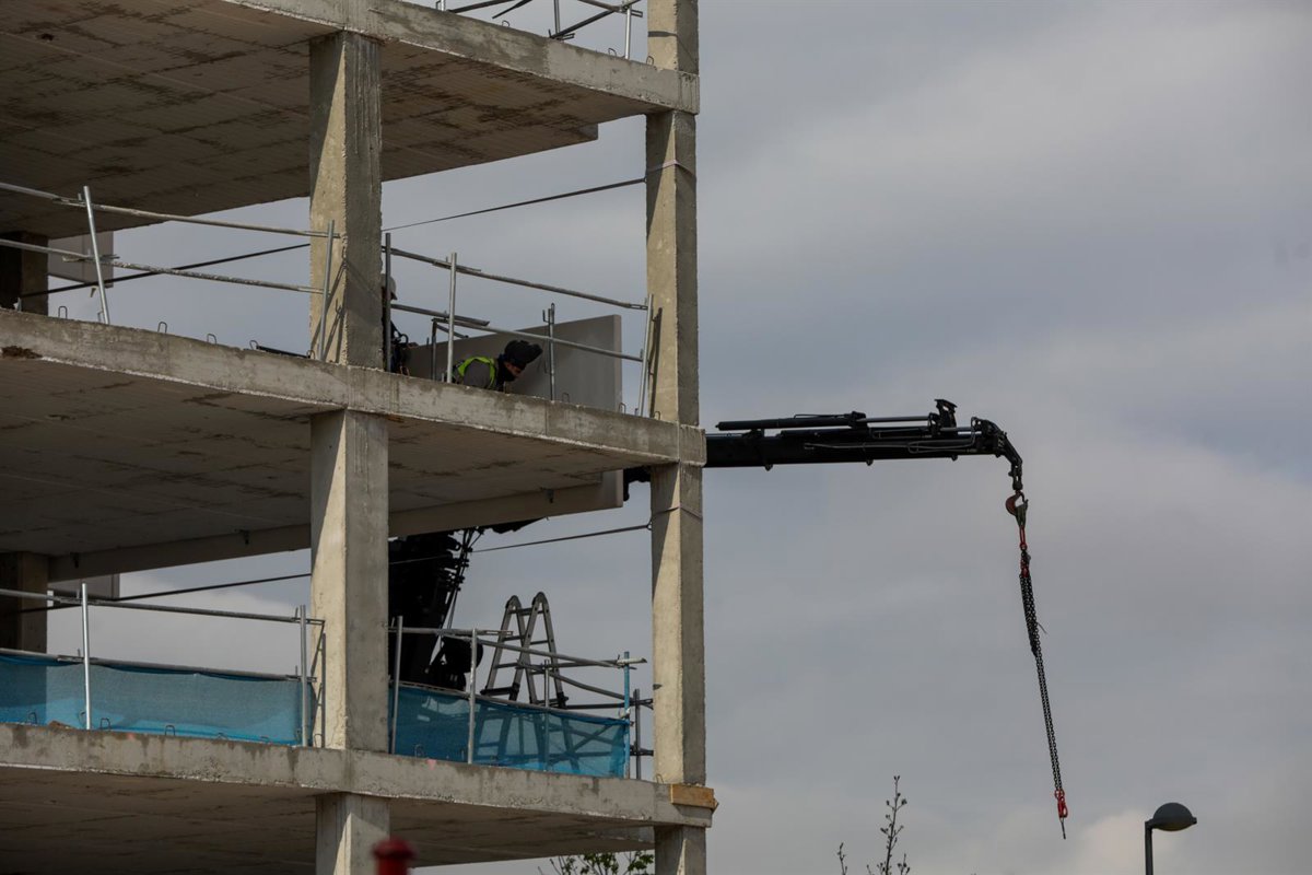 Varios trabajadores de una empresa de hierros del Polígono Industrial Prado Overa trabajan en la construcción de un edificio, en Leganés/Madrid (España), a 13 de abril de 2020. - Jesús Hellín - Europa Press - Archivo
