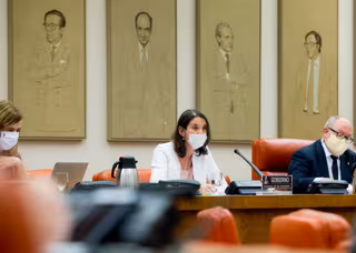 La ministra de Industria, Comercio y Turismo, Reyes Maroto, en una comparecencia en Comisión en el Congreso - CONGRESO