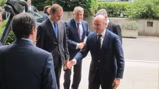De Guindos ha asistido este lunes a Getxo (Vizcaya), donde ha mantenido una reunión con representantes del Círculo de Empresarios Vascos. En la cita ha estado acompañado del delegado del Gobierno en el País Vasco, Javier de Andrés, y del presidente del PP de Euskadi, Alfonso Alonso.