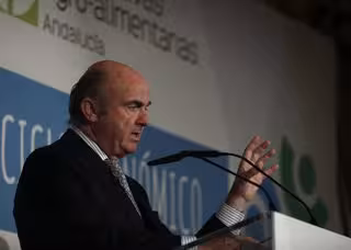 El vicepresidente del BCE, Luis de Guindos, en la clausura del I Foro del Cooperaticismo Agrario - EUROPA PRESS - Archivo