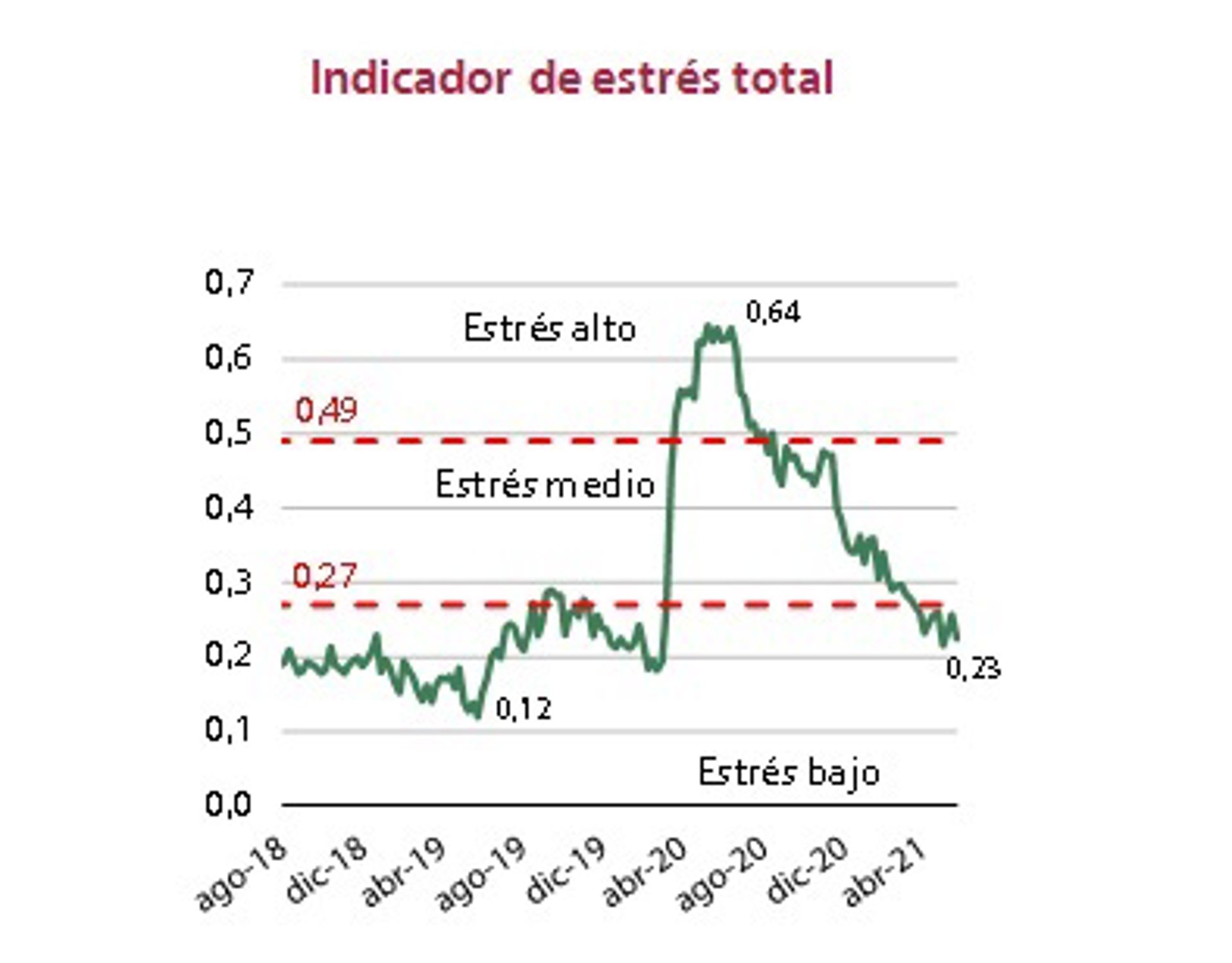 La Comisión Nacional del Mercado de Valores (CNMV) ha comunicado que el indicador de estrés de los mercados financieros ha seguido bajando en lo que va de año y se ha colocado en niveles prepandemia.
