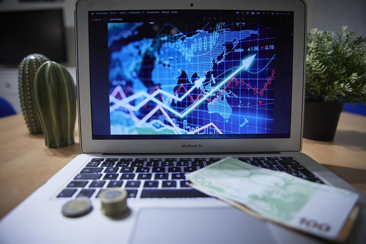 Archivo - Un gráfico en un ordenador portátil con billetes y monedas, a 4 de enero de 2022, en Madrid, (España). - Jesús Hellín - Europa Press - Archivo