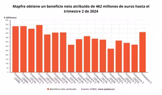 Mapfre obtuvo un beneficio neto de 462 millones de euros en el primer semestre del año, cifra un 46% superior a la del mismo periodo de 2023, según ha informado este viernes el grupo asegurador, que ha atribuido la "intensa" mejora de su resultado a la mayor aportación de Estados Unidos, España y el negocio de reaseguro.