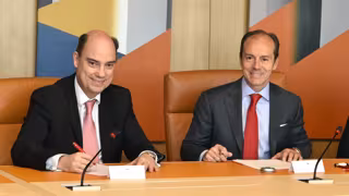 Foto del acuerdo firmado entre Santander y Mapfre en 2019. - SANTANDER