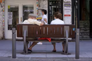 Archivo - Una pareja de ancianos con mascarilla sentada en un banco, a 27 de julio de 2021, en Madrid, (España). - A. Pérez Meca - Europa Press - Archivo