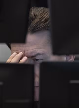 Archivo - dpatop - 28 February 2020, Hessen, Frankfurt_Main: An exchange trader looks at monitors at the Frankfurt Stock Exchange. - Boris Roessler/dpa - Archivo