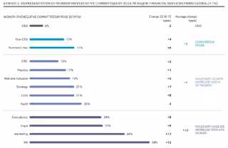 A pesar de este crecimiento, los números registrados en el estudio 'Women in Financial Services' de este año todavía no son suficientes y queda un "largo camino" para crear una industria en la que las mujeres tengan igualdad de oportunidades y resultados, puesto que muchos de los roles que ocupan en los comités siguen estando dentro de las áreas funcionales. A este respecto, solo el 6% de las directoras ejecutivas son mujeres, un dato que tampoco mejora en los consejos, donde alcanzan el 9%.