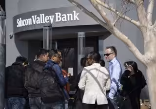 SANTA CLARA, March 14, 2023 -- People queue up outside the headquarters of the Silicon Valley Bank (SVB) in Santa Clara, California, the United States, March 13, 2023. The U.S. Treasury Department, the Fed, and the Federal Deposit Insurance Corporation - Li Jianguo / Xinhua News / Contactophoto