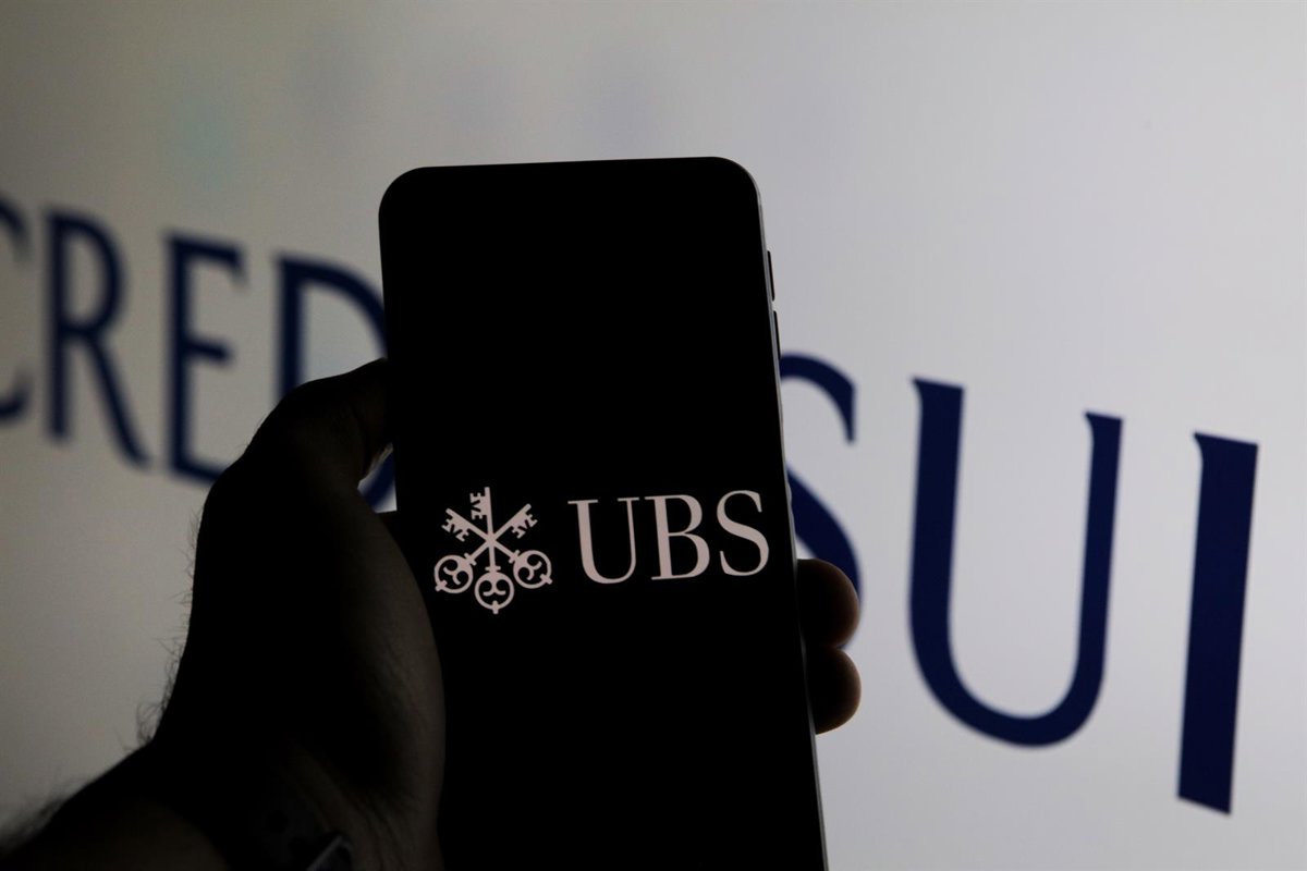 Archivo - 23 March 2023, Turkey, Gaziantep: The logo of the financial services company UBS is seen on the screen of a mobile in front of the logo of Credit Suisse Banks. Photo: Muhammad Ata/IMAGESLIVE via ZUMA Press Wire/dpa - Muhammad Ata/Imageslive Via Zuma / Dpa - Archivo