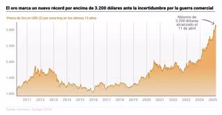 De tal manera, el precio de la onza de oro llegaba a subir este viernes hasta un récord de 3.213 dólares. En lo que va de año, el metal precioso se ha revalorizado más de un 20%.