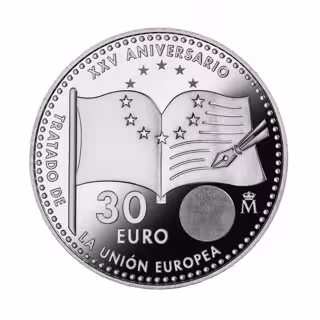 La Fábrica Nacional de Moneda y Timbre-Real Casa de la Moneda ha acuñado una moneda conmemorativa del 25 aniversario de la firma del Tratado de la UE que se puede obtener desde este martes en entidades financieras por un importe de 30 euros, el mismo valor que su facial.