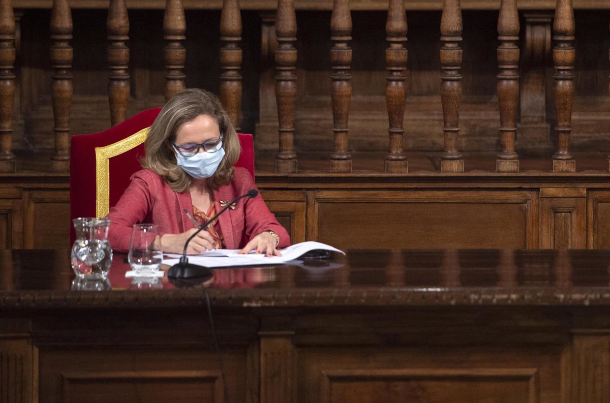 La vicepresidenta segunda del Gobierno y ministra de Asuntos Económicos, Nadia Calviño, interviene la sesión El futuro de las finanzas: tecnología y sostenibilidad, del II Foro Económico Internacional Expansión. - Alberto Ortega - Europa Press