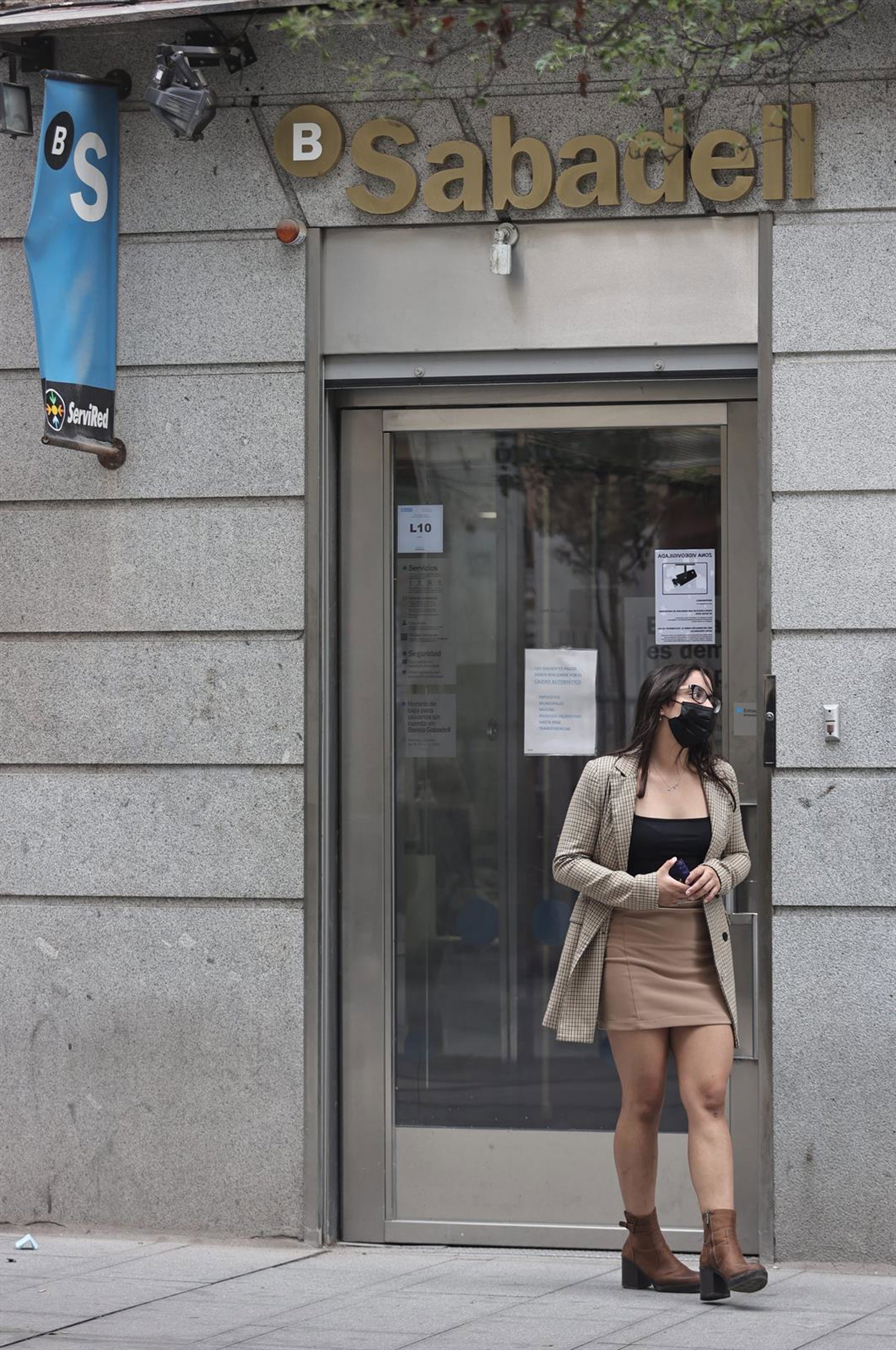 Una mujer sale de una sucursal de Banco Sabadell - Eduardo Parra - Europa Press