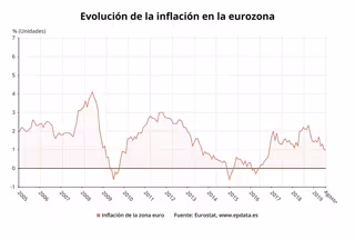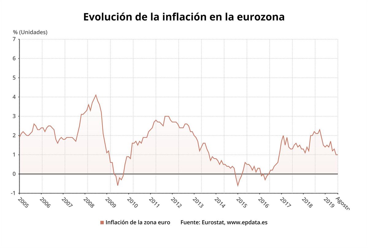 La tasa de inflación interanual de la zona euro se ha situado en agosto en el 1%, igual que el mes anterior, cuando había caído a su nivel más bajo desde 2016, lo que deja vía libre al anuncio de nuevas medidas de estímulo al Banco Central Europeo (BCE) en su reunión del próximo 12 de septiembre, según el dato preliminar publicado por Eurostat.