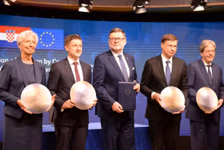 "Nuestra unión monetaria fiable es un gran activo para Europa, un símbolo de su fuerza, unidad y solidaridad", ha destacado el vicepresidente económico de la Comisión Europea, Valdis Dombrovskis, tras la firma de los textos legales que convertirán a Croacia en el vigésimo país de la eurozona.