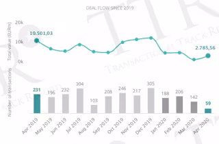 A nivel sectorial, el inmobiliario ha sido de nuevo el más activo del año, con un total de 142 transacciones, 20 en abril, pese a que registra una disminución del 34% con respecto al mismo periodo de 2019.