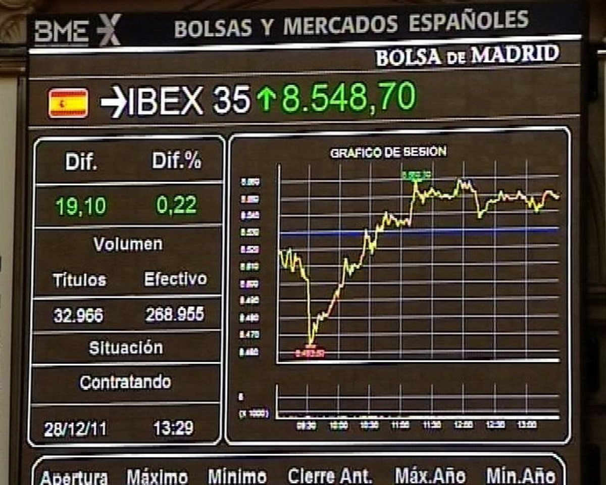 El Ibex 35 ha subido un 1,55% a cierre de mercado y ha alcanzado los 8.487,9 puntos, impulsado por la gran banca, y busca cerrar este año en la cota de los 8.500 enteros.