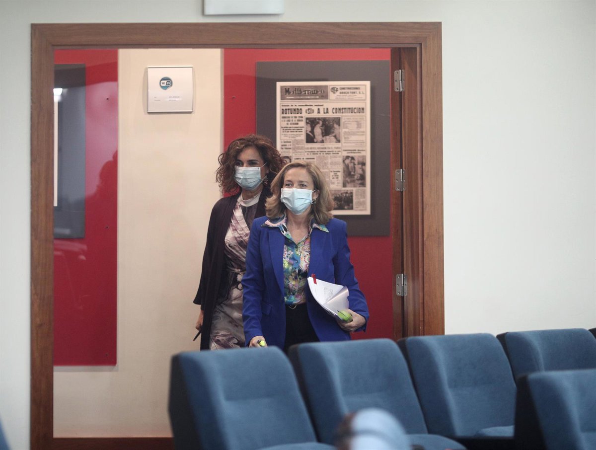Archivo - La vicepresidenta y ministra de Asuntos Económicos y Digitalización, Nadia Calviño, y la ministra Portavoz y de Hacienda, María Jesús Montero, se dirigen a comparecer en rueda de prensa posterior al Consejo de ministros en Moncloa, Madrid (Esp - EUROPA PRESS/E. Parra. POOL - Europa Press