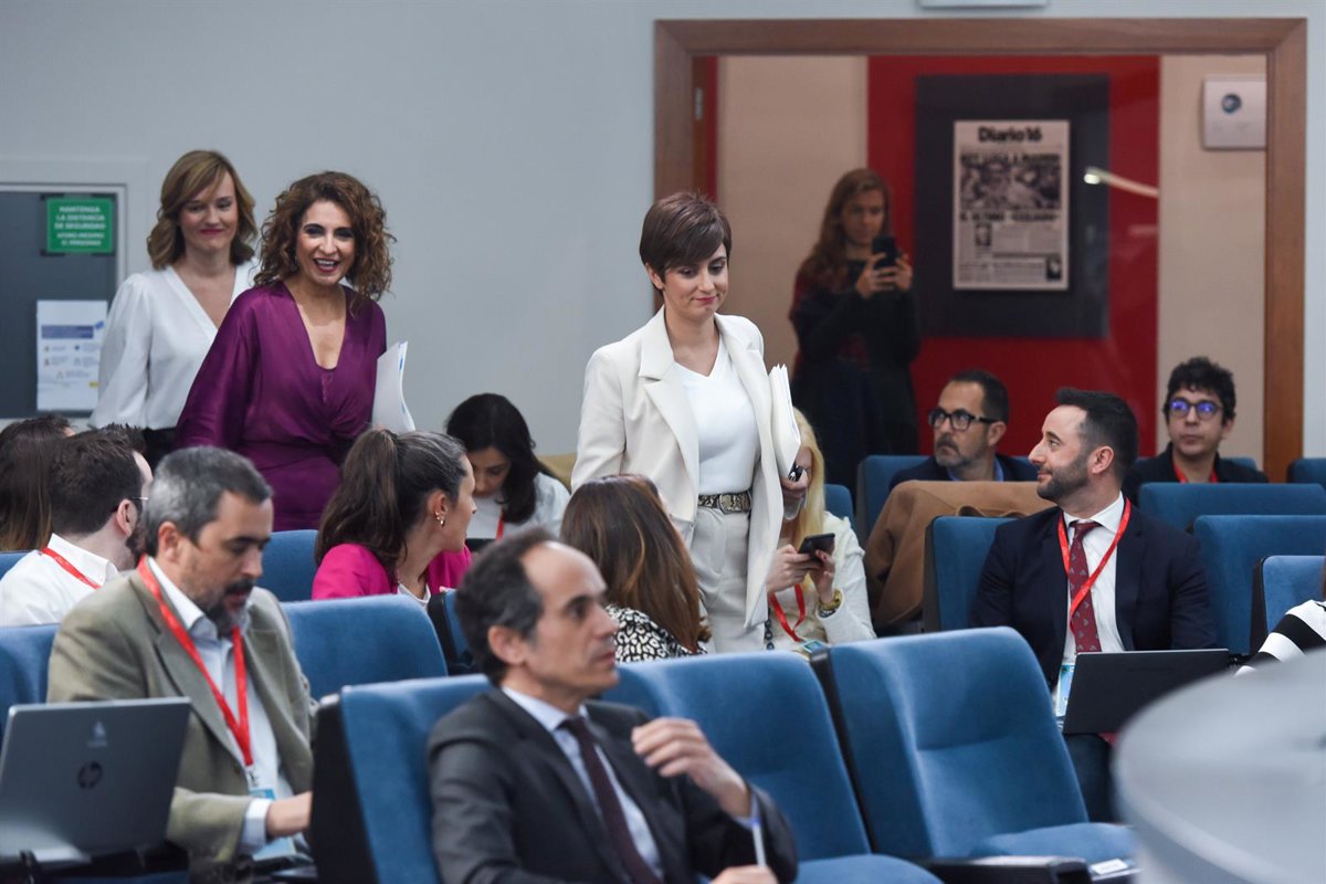 (I-D) La ministra de Educación, Pilar Alegría, la ministra de Hacienda y Función Pública, María Jesús Montero, y la ministra de Política Territorial, Isabel Rodríguez, a su llegada a la rueda de prensa posterior al Consejo de Ministros - Gustavo Valiente - Europa Press