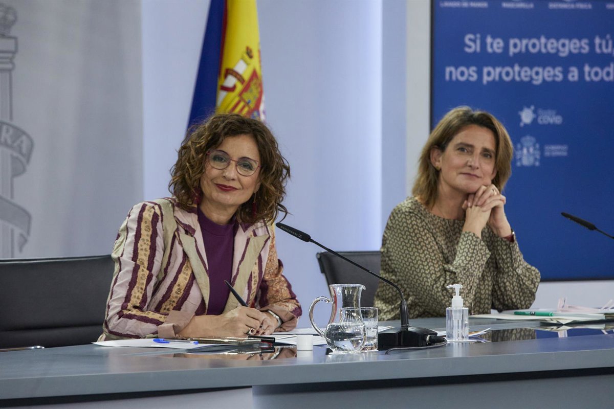 Archivo - La ministra de Hacienda, María Jesús Montero, y la vicepresidenta cuarta y ministra para la Transición Ecológica, Teresa Ribera, tras el Consejo de Ministros - EUROPA PRESS/J. Hellín. POOL - Europa Press