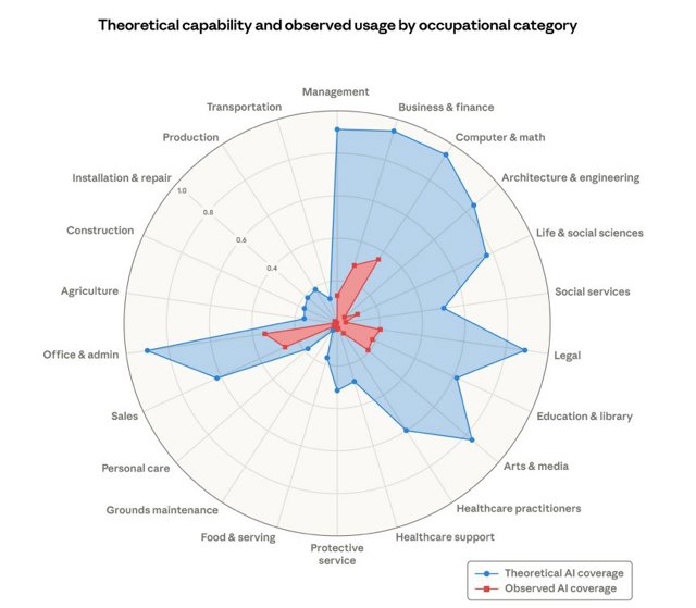 Un gráfico procedente de Claude, el chatbot desarrollado por la startup, ha generado debate en redes como Linkedln y opiniones divididas en cuanto a la precisión del estudio.
