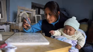 Una cuidadora junto a un bebé - OIT
